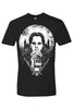 Fall down the rabbit hole wearing this gravely goth Alice in Wonderland tee! Sinfully soft, this killer shirt features Absolem the Caterpillar smoking hookah on a morbid mushroom. Wearing a tattered dress and striped tights, Alice lurks below with a knife in hand... waiting for the spooky smoke to guide her through the weird, whimsy world of Wonderland.