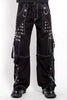 Get pierced by punk in these sick street goth pants! Black and baggy, these Tripp pants feature red stitch detailing, cargo pockets, and adjustable ankles for a change in fit. Loaded with safety pin hardware, zipper details, metal D-rings, and chains for days. Zip off the pants legs to transform these Tripp pants into shorts!